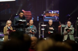 The above Scripture is in response to them having “Jesus, speak to me.” on the huge signs behind their heads at Passion 2012.