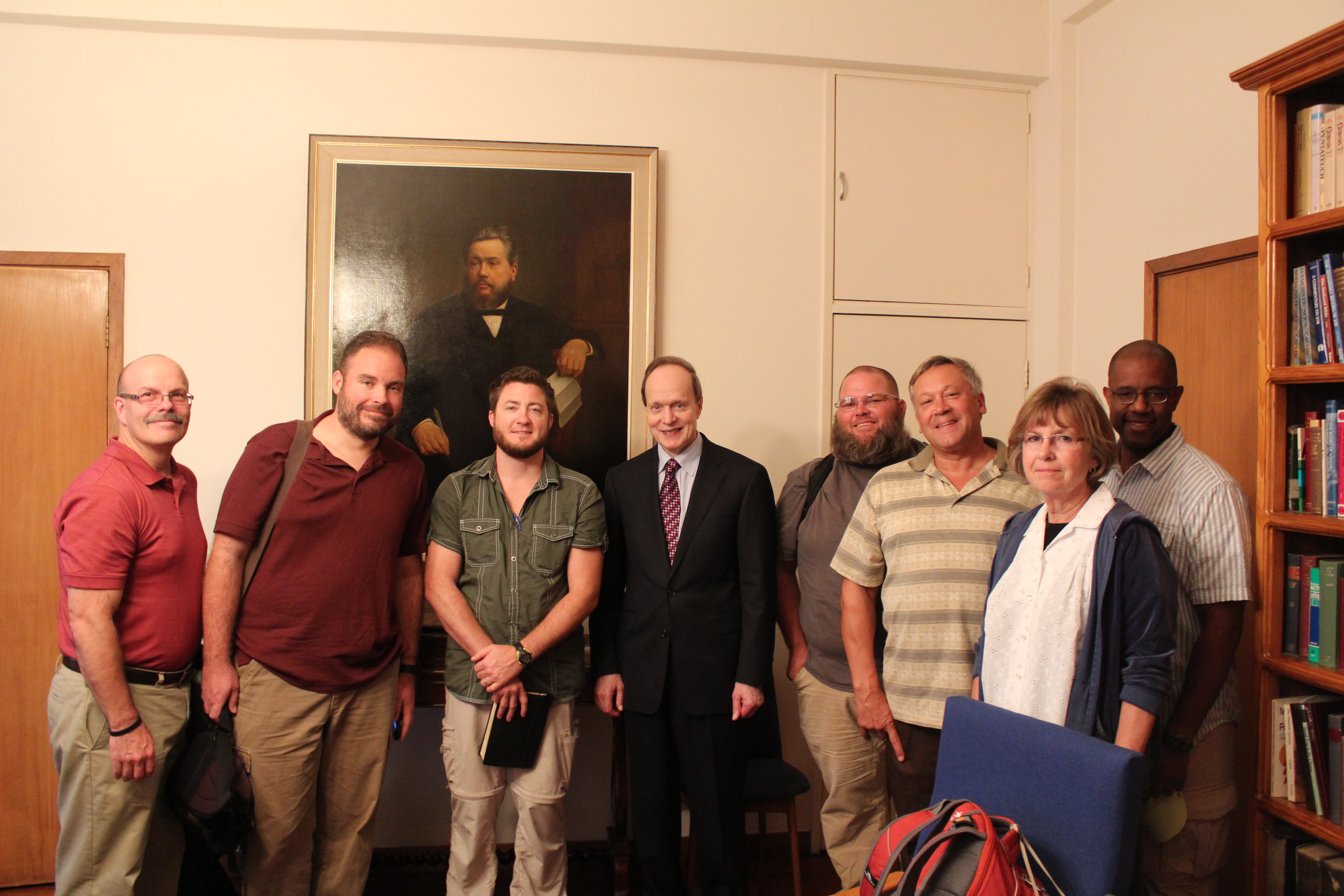 - The team with Dr. Peter Masters in his office, with Spurgeon’s last portrait and pulpit behind us.