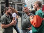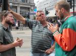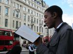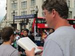 - Scott heralding the Gospel in Leicester Square before we were told to not use amplification. We then went to Oxford Circus.