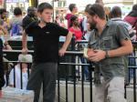 Robert, Jason, and I set up in the middle of the Square and it wasn’t long before we were prohibited from preaching (we couldn’t practice any religious speech or hand out literature within the park). Eventually, Robert and I found our way over to a couple of young students named Patrik and Fahim, who couldn’t have been older than 15 years old. As Patrik is from Hungary and Fahim from Saudi Arabia, we had a bit of a language barrier but they seemed to understand well enough to have a conversation.