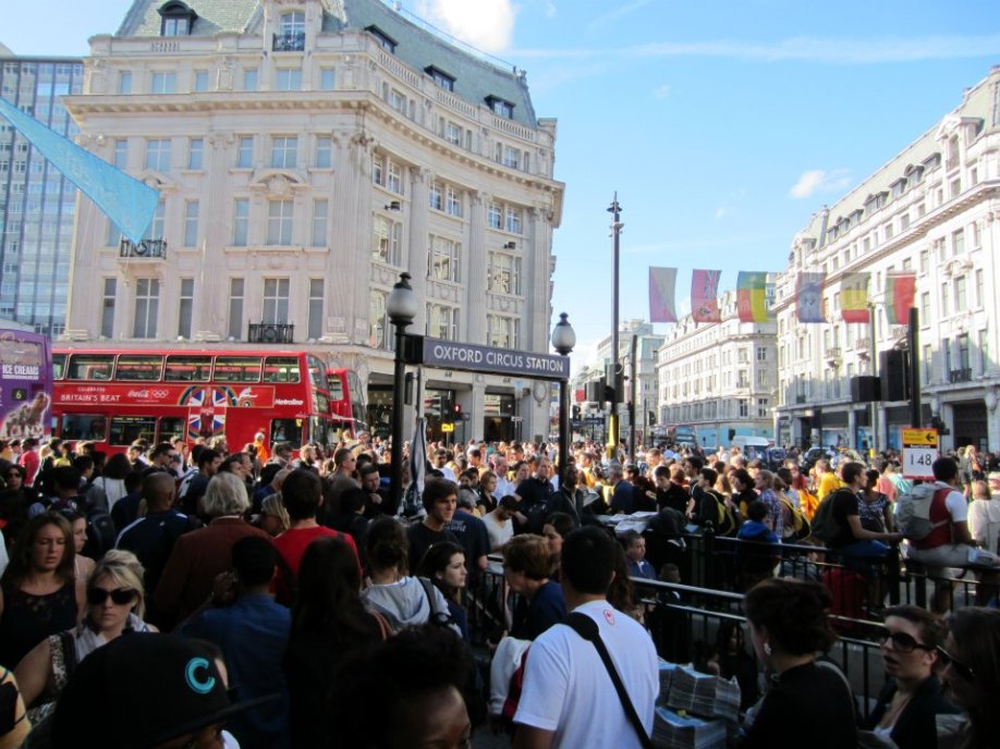 It got so crowded that the tube stations overflowed onto the sidewalks, which provided for a waiting audience!