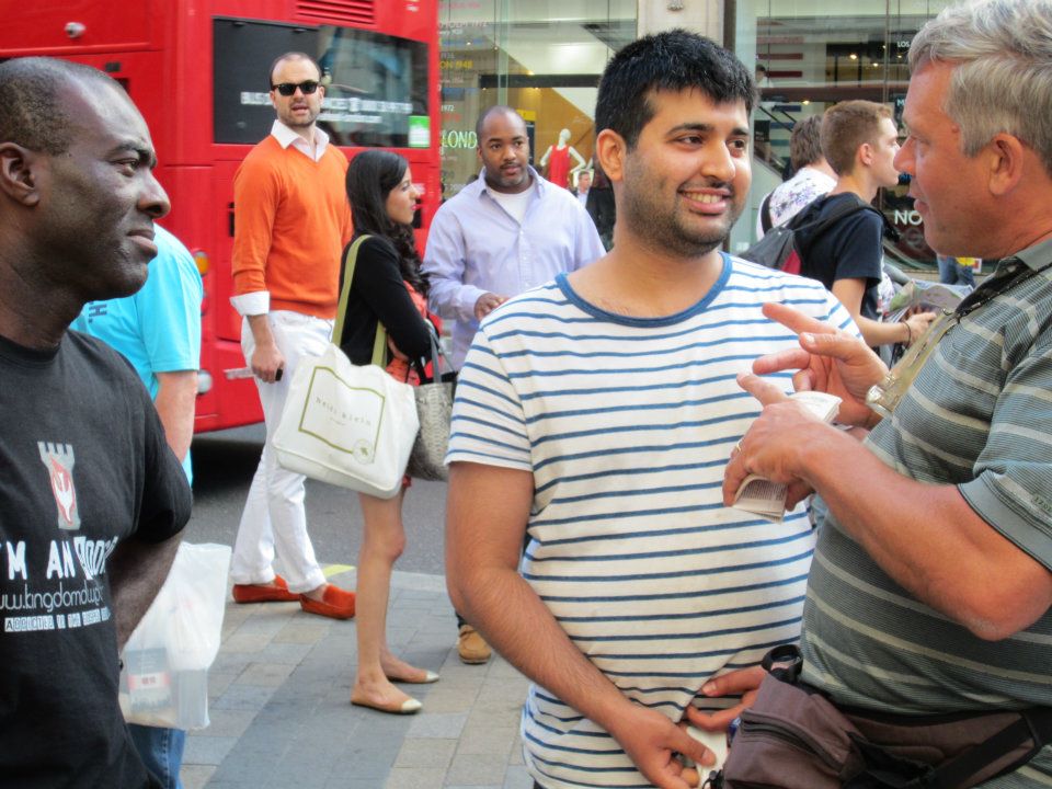 This man heckled Tony and was detained by police a few days before, only to find himself being engaged by Scott at Oxford Circus. God is showing him mercy by allowing him to hear the Gospel twice.