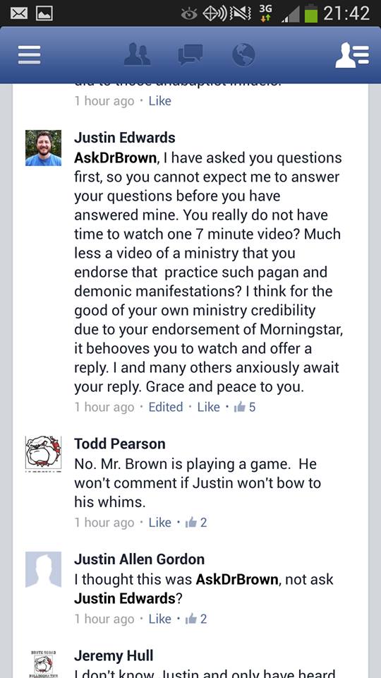 Folks, this is post has generated some of the post obscene and ugly posts I’ve ever seen, and if they are friends of Justin Edwards, that is very telling. Virtually every standard of decency and grace we call for has been violated, not to mention you all think I’m supposed to ignore thousands of others, drop all my writing deadlines, ignore all other commitments, and then if I don’t respond, I’m endorsing someone. This is one of the shameful displays I’ve ever seen, so feel free to copy the entire thread, which will soon be deleted.